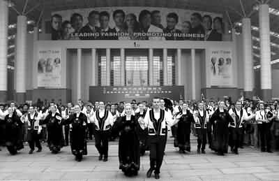 在第九届宁波国际服装节开幕式上,来自法国的民间艺术家们跳起了欢快的舞蹈。(记者丁安周建平摄)