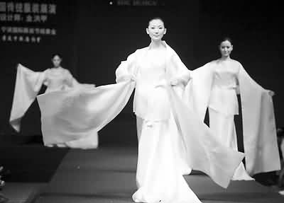 中国宁波网讯 昨日下午,在南苑饭店上演了两场分别来自韩国和中国的服装秀,两位设计师在设计中都不约而同地将传统与现代元素相糅合。