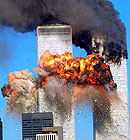 9月11日上午接近9时纽约世贸大厦北楼被撞