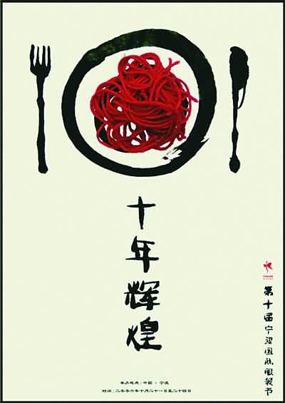 为了更好地宣传第十届宁波国际服装节,组委会在今年上半年特地举办了第十届宁波国际服装节海报设计比赛,希望由宁波人自己来为服装节的十年华诞设计海报。比赛共收到来自广告设计公司、大专院校的近200幅作品。
