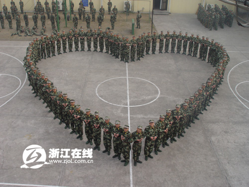 浙江边防新兵队列组成迷彩心型 祝福女友(图)