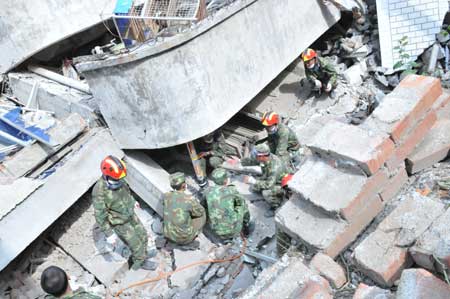 老乡这里发现两个,她是一个家庭,这个是个五层楼,它一下全部塌下来了,我看到二楼,二楼已经压到一楼的一半了,正好还有个横梁把它顶住了,估计还有两个人,一楼最后两个人还活着,他答应了。现场同期:你这样,你到前面去,你要前面去想办法,就把她再拉一拉看看,拉一拉看看,听到没有?只要能拉动,她有什么感觉,能拉动,够不着,够不着她的手。