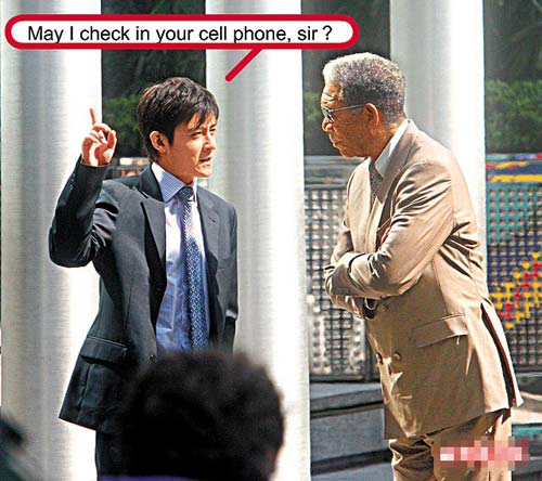片中西装笔挺的Edison,原来只扮演一名大厦接待员,在入口大堂出现的他,唯一的对白是对摩根费曼说:“May I check in your cellphone,sir?(意译为我可否收起你的电话?)”而能够清楚看到他的镜头也仅得这三秒而已。