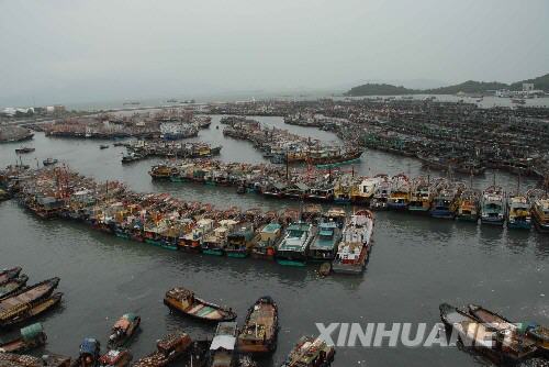 8月6日,广东省阳江市数千艘渔船返港避风。今年第9号强热带风暴“北冕”于6日晚7时45分在广东阳西县溪头镇沿海地区登陆。新华社发(刘再扬摄)