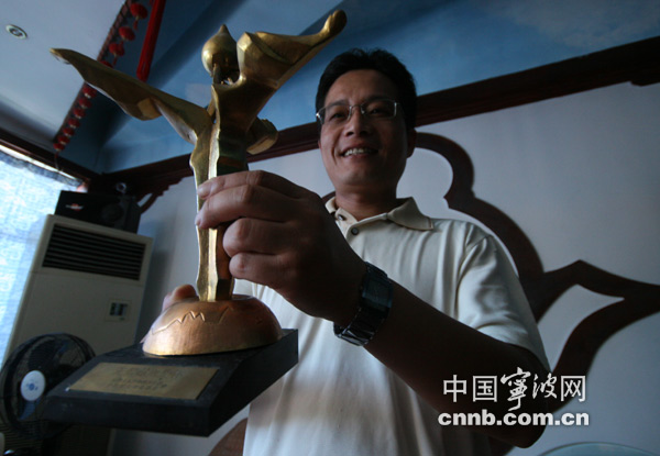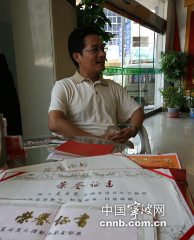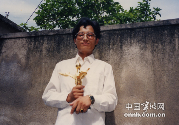 照片里捧着无偿献血金杯奖杯的小伙子叫夏安宽,奉化溪口人,那是他在1993年6月得奖后的照片,照片里的他才26岁,1.7米高的个子显得有些消瘦,鼻上架着一副茶色近视眼镜。昨天下午,记者在奉化溪口他经营的奉化姐妹连锁美容院中见到了他,除了服装和发型改变外,今年41的他并没有太大的变化。夏安宽告诉记者:“照片里的那身当年是最流行的衣服现在肯定是穿不下了,因为现在胖了不少。”