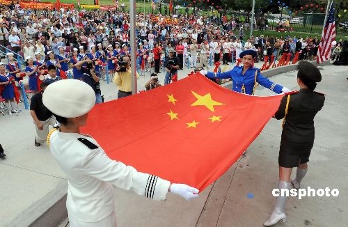 当地时间9月21日上午,数百名洛杉矶华人华侨在华人聚居的蒙特利公园市举行隆重的升国旗仪式,庆祝中华人民共和国成立59周年。中新社发张炜 摄 中新社洛杉矶九月二十一日电(记者张炜)美国洛杉矶地区华人华侨等各界人士二十一日上午在蒙特利公园市集会,参加隆重的升国旗仪式,庆祝中华人民共和国成立五十九周年。 上午十时,庄严的升旗仪式在蒙特利公园市巴恩斯公园正式开始,雄壮的“义勇军进行曲”奏响,现场数百名华人华侨和来宾全体肃立,注视着五星红旗冉冉升起。 “今天在这里升起五星红旗,表达的是海外华侨华人心系故里的情怀,是送给祖(籍)国最神圣的生日贺礼。”中国驻洛杉矶总领事张云在升旗仪式上动情地说,“这面旗帜将中华儿女的心连在一起,让海内外炎黄子孙扬眉吐气,这面旗帜将继续引领我们走在民族复兴的大道上,迈向更加美好的明天。” 曾两次当选蒙特利公园市市长的现任华裔市议员刘达强在仪式上说,蒙特利公园市是全美华裔人口比例最高的城市,勤劳的华人市民为这座城市的发展和中美友好关系做出了杰出的贡献。据美国人口统计数据显示,来自中国大陆、台湾和香港等地华裔移民及其后代已经超过该市人口的一半,成为多数族裔。 九十三岁高龄的萧志刚老人坐着轮椅来到现场参加升旗仪式,轮椅前插着中美两国国旗。萧志刚告诉记者,他曾经参加八年抗日战争,后来又辗转去了台湾,三十多年前来到美国。他说:“我每年都会来这里参加升中国国旗典礼,每次都很激动。” 另悉,中国国务院侨务办公室、中华全国侨联等向南加州华人华侨发来贺电,感谢华人华侨在四川地震赈灾、迎奥运护圣火等活动中做出的贡献。 |