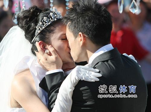 2008年11月6日,海南三亚,奥运冠军杨威和杨云在天涯海角游览区爱情广场举行隆重、浪漫的婚礼。图为婚礼现场精彩画面。