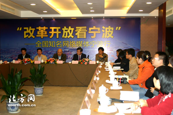 北方网消息(记者 覃贻花):11月19日下午,“改革开放看宁波——全国知名网络媒体宁波行”活动正式启动。本次活动历时3天,将主要对杭州湾跨海大桥、宁波-舟山港、奉化滕头村等地进行考察采访,从经济发展、新农村建设、和谐社会等方向,报道宁波改革开放30周年以来取得的变化和成就,展现宁波和谐、平等、生态、平安的风采。