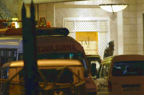 27日晚特种部队正在泰姬玛哈酒店的正门外守候。 |