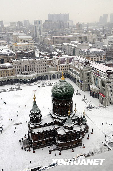 12月3日,哈尔滨市建筑艺术广场披上了一层银装。新华社发 |