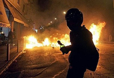 中新网12月9日电 希腊警方枪杀一名青年触发的骚乱8日进入第3日,仍未平息。15名希腊学生8日更占据德国首都柏林的希腊领事馆,向领事馆官员递交抗议声明,并展示一幅写上“杀人”的横额。