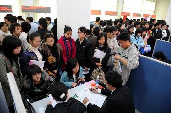 当日,在福州2009年春季大中专毕业生供需见面、双向选择大会上,120家招聘单位提供5000多个就业岗位,其中非公经济组织提供的岗位占85%以上,吸引近万名求职者前来应聘。新华社记者姜克红摄