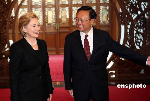 中新网北京2月21日电(记者周兆军)中国外交部长杨洁篪21日上午在北京钓鱼台国宾馆与到访的美国国务卿希拉里·克林顿举行会谈。