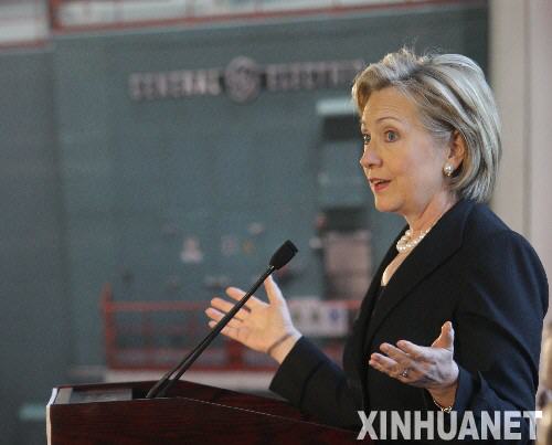 2月21日,希拉里·克林顿在与清华大学的师生交流。当日,美国国务卿希拉里·克林顿参观京能集团北京太阳宫燃气热电有限公司,并在现场与来自清华大学的师生座谈。新华社记者邢广利摄