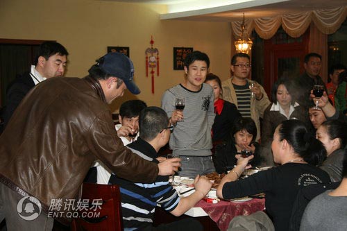 腾讯娱乐讯 2009年3月9日讯,北京,在北京首站演出大获成功的小沈阳昨日(3月8日)带着妻子沈春阳和刘老根大舞台的师兄弟们在北展附近的一家酒店里涮火锅吃庆功宴。一众人胃口大开要了两瓶红酒,一边喝酒涮肉一边天南地北海聊,饭店里烟气腾腾非常热闹。小沈阳不时歪头和身旁的妻子说悄悄话,浓情蜜意羡煞旁人。