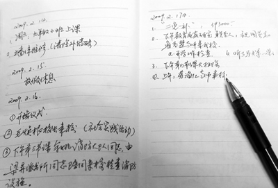 “阿科”病倒前几天的工作日记。 (陈斌荣摄)