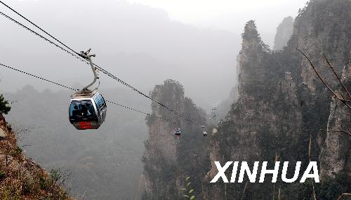 资料图片:3月22日,游客乘坐封闭式缆车游览张家界天子山景区。新华社记者赵众志摄