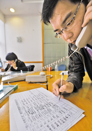宁波城市形象主题口号征集办公室工作人员接听市民的来电。记者 刘波 摄