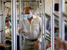 墨西哥城市民戴着口罩乘坐地铁