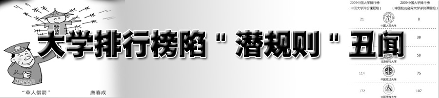 诸多大学排行榜的权威性和公信力一向饱受非议,天津大学校长龚克透露,曾有一家排行榜的制作机构找上门来索要“赞助”,遭到学校拒绝。 关于大学排名机构收取咨询费和赞助费等可疑费用的猜测几年前就已存在,不过这是第一次有大学校长出面证实这一潜规则。