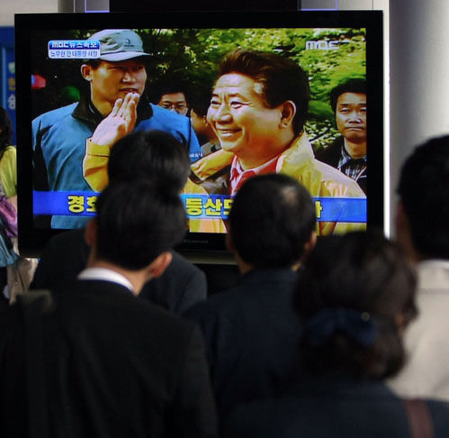 韩国市民在电视上观看卢武铉死亡消息 |
