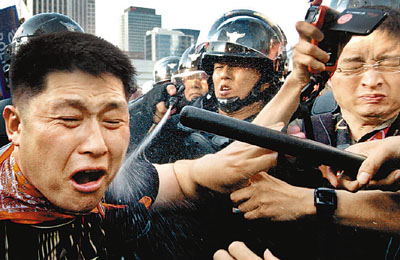 在30日傍晚所举行的“530反政府”万人示威游行持续至深夜,愤怒民众齐聚首尔广场,不愿离去,甚至爆发民众用铁铲攻击警用巴士,场面一度失控。