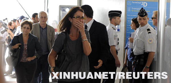 6月1日,一名法国航空公司AF447 航班乘客的亲属(前)抵达法国夏尔·戴高乐机场。一架法国航空公司客机当天从巴西里约热内卢的一个机场起飞后不久在大西洋海域上空失踪。 新华社/路透