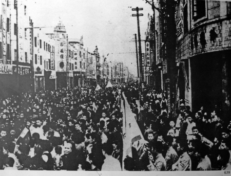 宁波军民在中山路集会,欢庆宁波解放