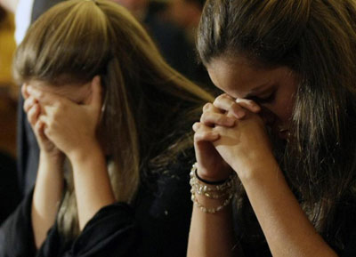 6月5日,为失事的法航空客330-200机上人员展开的祈福超度仪式还在进行。图为里约热内卢一位不幸失去儿子的父亲。