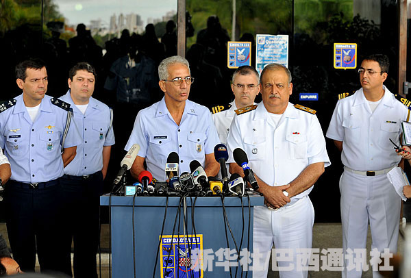 6月11日,在巴西东北部城市累西腓,巴西空军发言人拉蒙·卡多佐在新闻发布会上讲话。当日,巴西空军和海军在此联合召开新闻发布会,认为随着时间的推移,找到法航失事客机所有遇难者遗体的可能性越来越渺茫。新华社/巴西通讯社