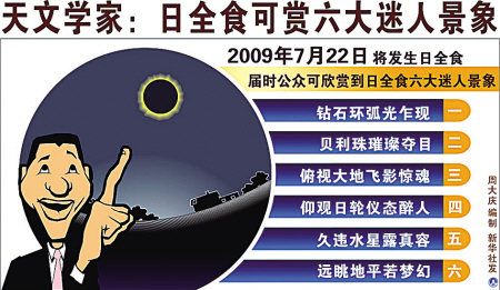 观赏日食奇观,莫忘保护眼睛。天文学家对记者表示,虽然日食期间阳光减弱,但是除了日全食的几分钟内可以用肉眼直接观察太阳,其余时间切莫直视太阳,否则会有失明危险。