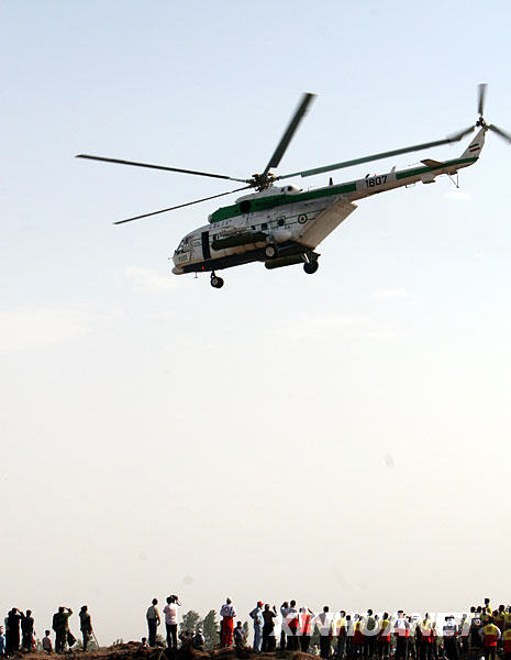 7月15日,在伊朗加兹温市附近的一个村庄,一架警用直升机在客机坠毁现场上空搜寻。当日,伊朗里海航空公司的一架客机在该国西北部城市加兹温附近的村庄坠毁,机上153名乘客和15名机组人员全部遇难。新华社记者梁有昶摄 |