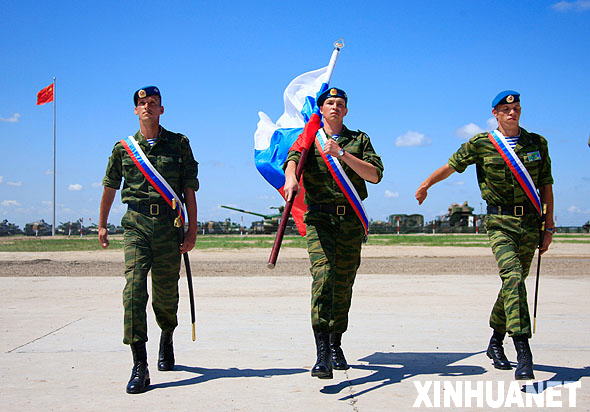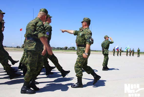 当日,“和平使命-2009”中俄联合反恐军事演习的俄方部队数百名官兵,在沈阳军区洮南战术合同训练基地演习场进行分列式训练,准备参加7月26日联合军演结束后的大型阅兵式。