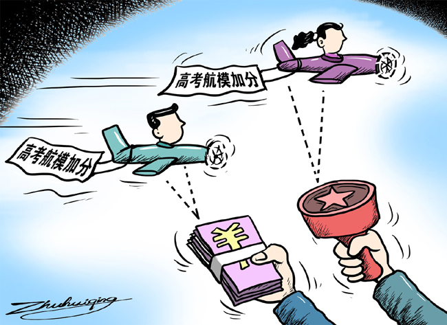 参加航模加分测试,可带来20分高考加分,而据08年高考成绩统计,浙江考生每增加一分就可超过200多名竞争者。对于20分的高考加分,恐怕每一个家长都会想方设法让自己的孩子拥有,然而,这不是普通的家长能够办得到的。因为,其一,获体育加分项目的考生名单不进行公示,社会上知之者甚少。绝大多数家长根本就不知道,可以通过此条捷径给孩子的高考成绩加20分;其二,一支航模训练队三五个人,最多不会超过6名学生,具体由所在学校与体育部门操作,外界难以知情。就是你家孩子想报名参加也“无门”。一方面普通人家子女想参加而不得其门;另一方面通过率却很高,甚至不参加比赛也能加到20分。自然,“三模三电”训练队成为有钱有权有势家庭子女组成的“高考加分俱乐部”,就一点都不奇怪了。