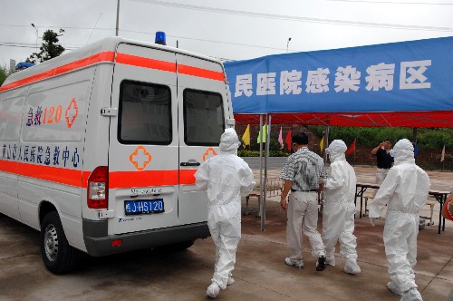图为8月2日安徽省卫生厅在黄山市休宁县举行大规模甲型H1N1流感大流行应急联合演练现场。新华社发(刘兵生摄)