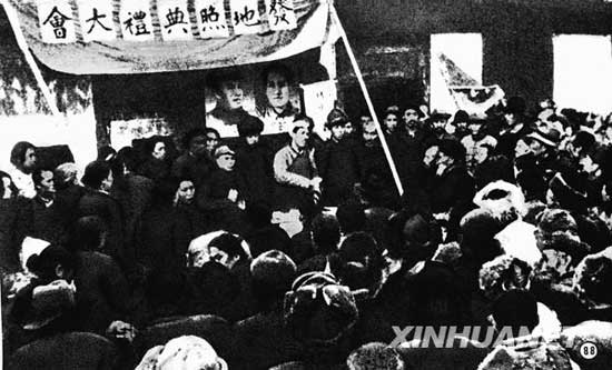 这是解放区人民政府在给翻身的农民颁发地照。新华社发(资料照片)