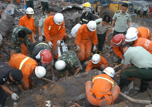 记者在现场看到,300多名公安、消防人员用铁棒撬、用铁锹铲,甚至用手挖,奋力清理瓦砾,抢救被埋人员。多台大型机械设备一刻不停地清理废墟,一辆辆救援车辆和救护车辆随时待命。截至当晚19时,现场抢救工作已经结束,抢险人员找到20名被埋人员,其中17人确认死亡,3人受伤,受伤人员已送往医院接受救治,无生命危险。