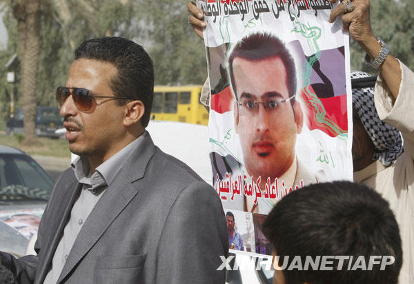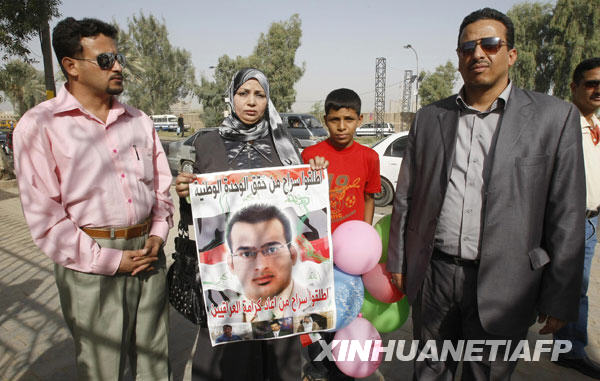 9月14日,在伊拉克首都巴格达,朝美国时任总统乔治·W·布什扔鞋抗议的伊拉克记者蒙塔兹·扎伊迪的家人等候扎伊迪的获释。但扎伊迪当天因为手续未完备未能按期获释,不得不在监狱里多待一天。新华社/法新