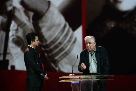 演讲从老艺术家李默然开始,他讲述的主题是“爱国”。82岁的李默然童年时期在日寇的铁蹄下度过,因生活所迫而贩卖烟卷的他,曾遭到过日本人的毒打。无法忘怀的童年记忆让李默然对于国家,对于民族有着浓烈的感情。在他心中,“爱国”不仅仅是一句口号,一个概念,更是贯穿于血脉的源动力。
