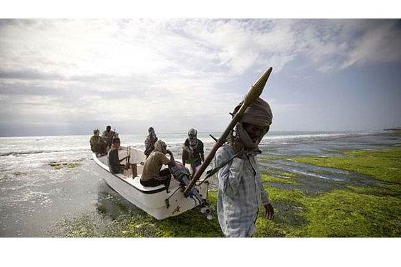 阿卜杜勒哈桑肩上扛着一枚火箭弹,他身后小船上坐着的是他的同伙。他们所在的这个海盗集团名叫“中部地区海岸巡逻队”,成立于2005年,目前集团拥有350名海盗、100多艘快艇。 近年来,索马里海盗劫持船只事件时有发生,从今年1月至今,已有超过50艘船只在索马里附近海域遭袭击,海盗的活动越来越猖獗。 在很多人印象中,海盗船上往往挂着骷髅旗,海盗们人多势众,他们衣着凌乱,手持武器,举止粗鲁。而近年来火爆荧幕的电影《加勒比海盗》,就向人们展现了与传统观念中有所不同的海盗形象。世界图片新闻社摄影师韦罗妮克德维格里(Veronique de Viguerie)跟踪拍摄了一群索马里海盗的日常生活,真实展现了现代海盗的一天。 本篇新闻热门关键词:火爆 |