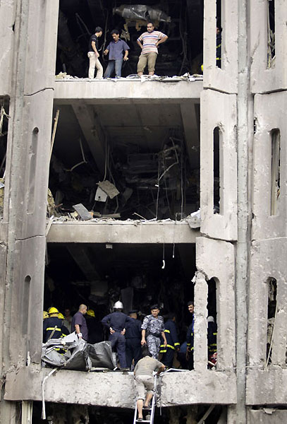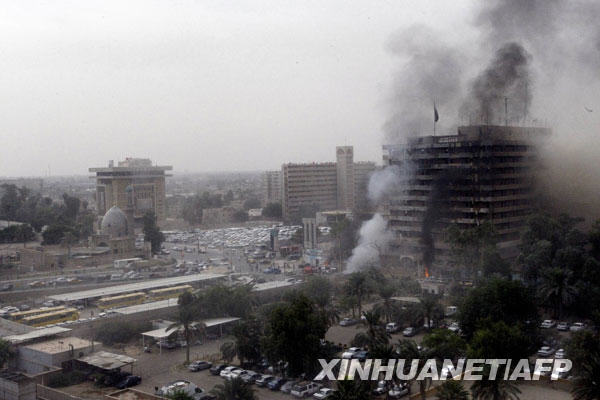 25日上午,巴格达市中心。两声巨大的爆炸接连响起,11层高的曼苏尔饭店颤抖起来。记者所住的房间内立时烟尘四起,天花板坍塌和玻璃迸裂之声响成一片。