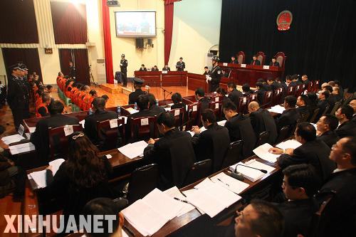 庭审现场(10月26日摄)。当日,公安部挂牌督办的第7批涉黑案件之一原重庆市人大代表黎强等涉黑案在重庆市第五中级人民法院开庭审理,31名被告人出庭受审,法院将用5天时间庭审此案。新华社发