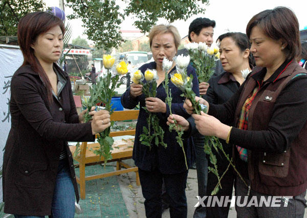 10月28日,众多荆州市民准备菊花,自发前往送别3位牺牲大学生。新华社记者 魏梦佳 摄