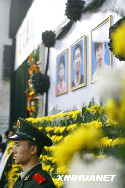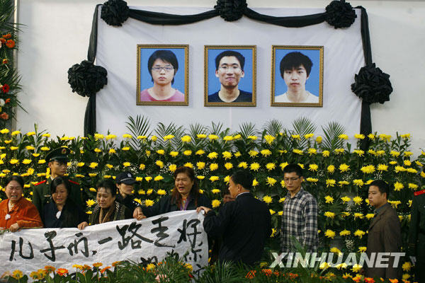 10月28日,为抢救落水儿童而牺牲的3名大学生的追悼会在荆州举行。新华社发(陈卓 摄)