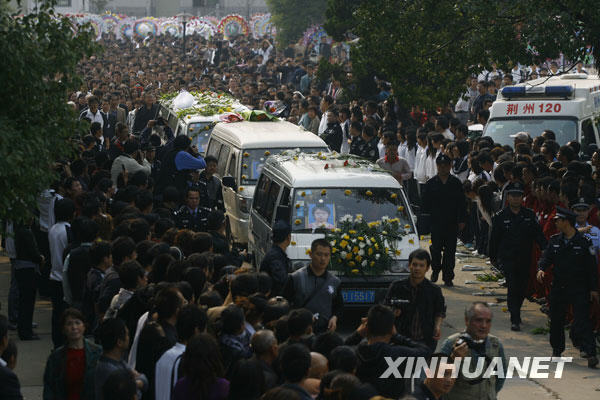 10月28日,荆州各界群众参加3名牺牲大学生的追悼会。新华社发(陈卓 摄) |
