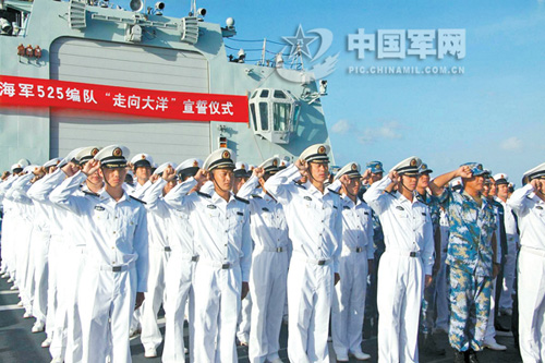 “我不是军人,但我却不自觉地热泪盈眶,神圣地举起了右手宣誓!”新华社随舰记者杨志刚如是说。