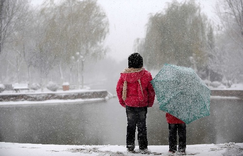 银川,2009年11月10日 银川迎来首场降雪 11月10日,银川市西夏公园内,市民在雪中行走。 当日,宁夏银川市迎来今冬首场降雪。气温下降8摄氏度左右,并伴有大风。 新华社记者 王鹏 摄