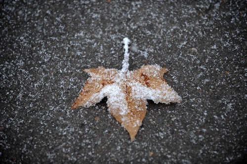 银川,2009年11月10日 银川迎来首场降雪 银川市西夏公园,雪中的一片落叶(11月10日摄)。 当日,宁夏银川市迎来今冬首场降雪。气温下降8摄氏度左右,并伴有大风。 新华社记者 王鹏 摄 |