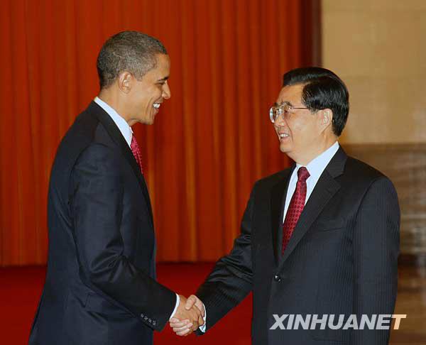 会谈前,胡锦涛为奥巴马访华举行了隆重欢迎仪式。