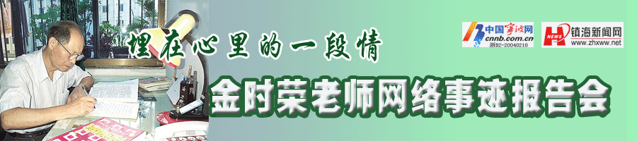 由中国宁波网、镇海区文明办、镇海新闻网络中心、镇海电视台联合举办的“埋在心里的一段情”金时荣老师事迹网络故事会在镇海举行。故事会以《鸿雁集》、铁扫帚等实物为载体,以当事人讲故事的方式,通过讲述人追忆金时荣老师的感人事迹和高尚品德来纪念金老师